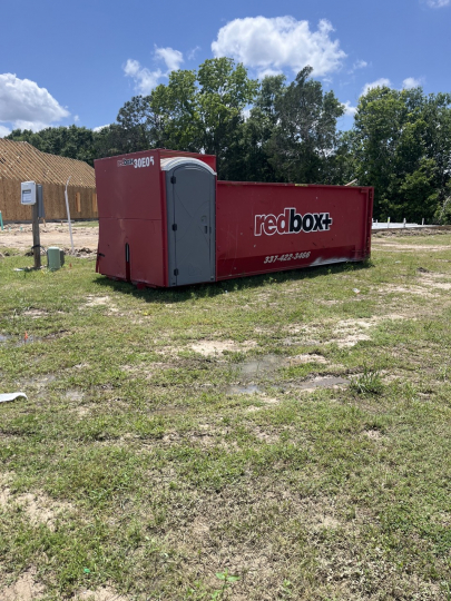 At redbox+ Dumpsters of Lafayette, it’s our mission to save you time and headaches so you can maintain a clean and efficient job site, as well as have a reliable dumpster rental for home cleanouts and other DIY projects. When you are searching for a dumpster roll-off rental company for your job site or residence, turn to our team at redbox+ Dumpsters. One call, two services, and solutions you can trust. When your roll-off is full, simply let us know and we will pick up the unit, clean the portable restroom, and remove it. If your project is continuing, we’ll bring a replacement roll-off. Our clean, efficient waste management solutions will help you keep your project rolling. We are proud to be locally owned and operated!
