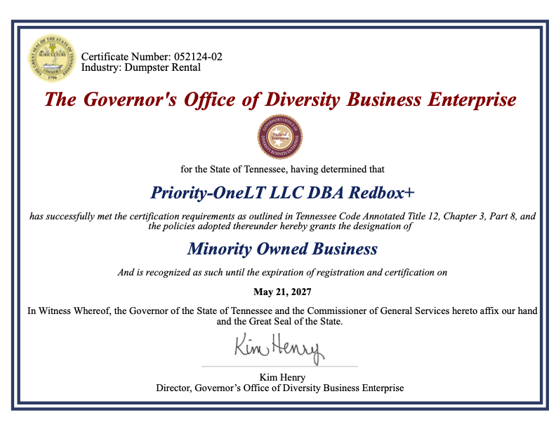 The redbox+ Dumpsters of North Nashville team is committed to providing our customers with the best possible experience. We offer a wide variety of dumpster sizes and types to fit your needs, and our friendly and knowledgeable staff will be happy to help you choose the right one. We also offer same-day delivery and pickup, so you can get your project started right away.