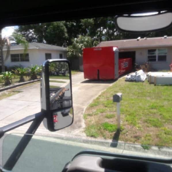 redbox+ of the suncoast dumpster rental in front of residential home